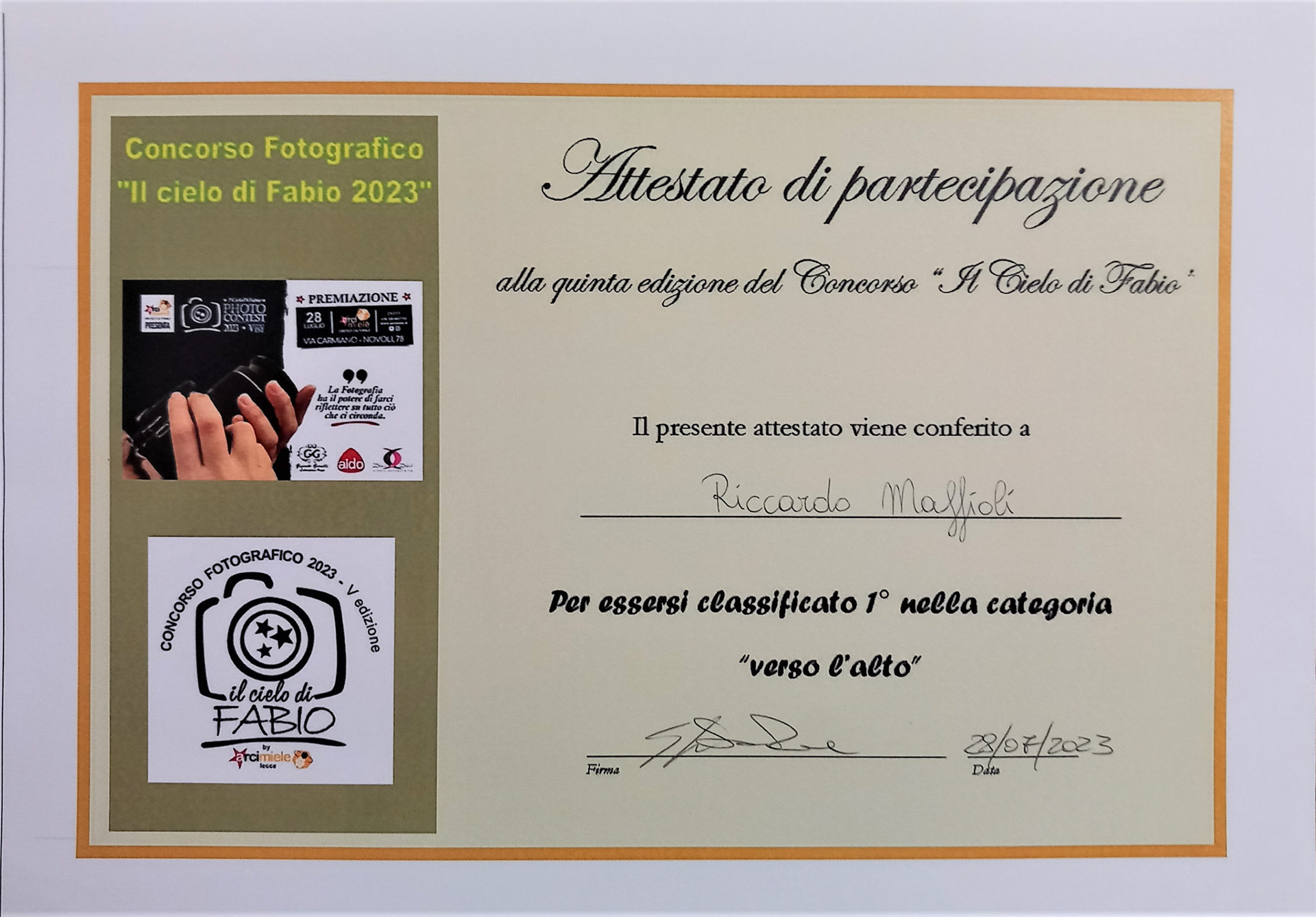 Dopo aver superato la votazione on line su Facebook e quella della Giuria Popolare presente alla serata finale, la Giuria Tecnica tra tutte le finaliste, ha ritenuto la sua fotografia la migliore per "soggetto", "emozione" e "originalità".